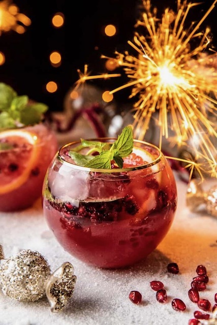 For starters, I think you’ll love this make-ahead, easy, and delicious cocktail. It’s a Citrus Pomegranate Champagne Smash, a beautiful and tasty combination of pomegranate juice, blood oranges, orange liquor, ginger beer, and champagne. Serve it in anything from a champagne coupe to a highball glass. The glass doesn’t matter because the drink, itself, will be the center of attention.