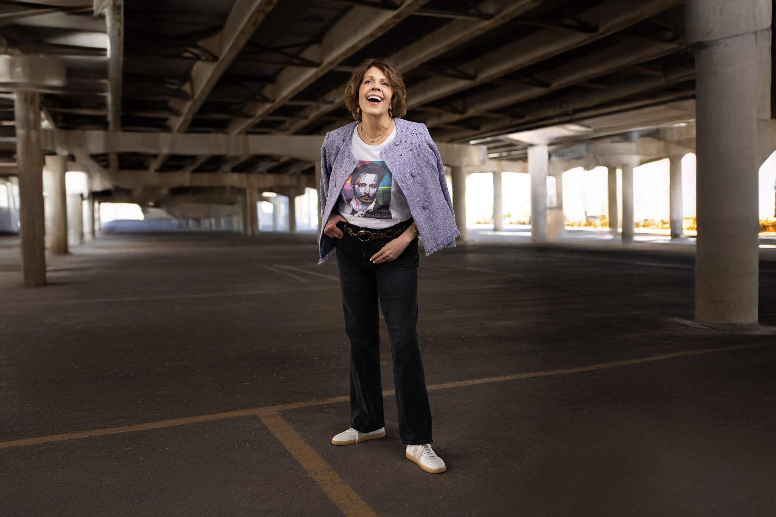 St. John knits was an upscale brand our mothers’ and grandmothers’ generation wore: matching jackets and skirts for the ladies who lunch bunch. But recently, St. John has jumpstarted their brand by appealing to younger generations with pieces like my timeless Sinclair Jacket, updated with a sprinkling of rhinestones and light-catching metallic threads. It also has a matching skirt, but I just bought the jacket–it’s still on sale–to wear with jeans and this fun Johnny Depp t-shirt, a birthday gift a few years ago from a friend. I added black, wide-legged “The Secret Sauce” jeans from Ayr, thank you, Jacqui Getz, for telling me about them in our interview, and Hogan’s retro-looking, gum-soled sneakers. The whole look is elevated, yet fun and youthful, and I can continue to wear the jacket for years to come with white pants and blue jeans in the spring and summer. Whether it’s an informal meeting, or grocery shopping, this has become one of my favorite things to wear.