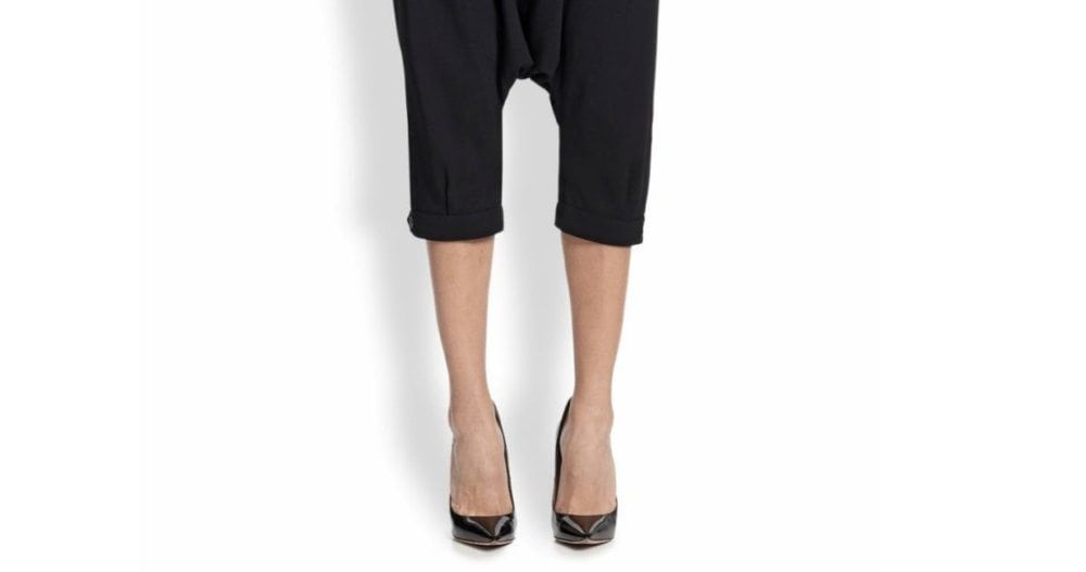 I will say this: I have a blogger friend who wears harem pants, and even though it’s not my style in the least, she pulls them off beautifully because she OWNS the look. (We’re talking harem, not drop-crotch, which you’re showing here)